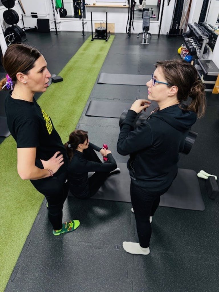 Vežbanje u manjim grupama sa individualnim pristupom osigurava pažnju trenera, osećaj sigurnosti i priliku da se ostvari odnos sa drugim mamama koje prolaze kroz isto.